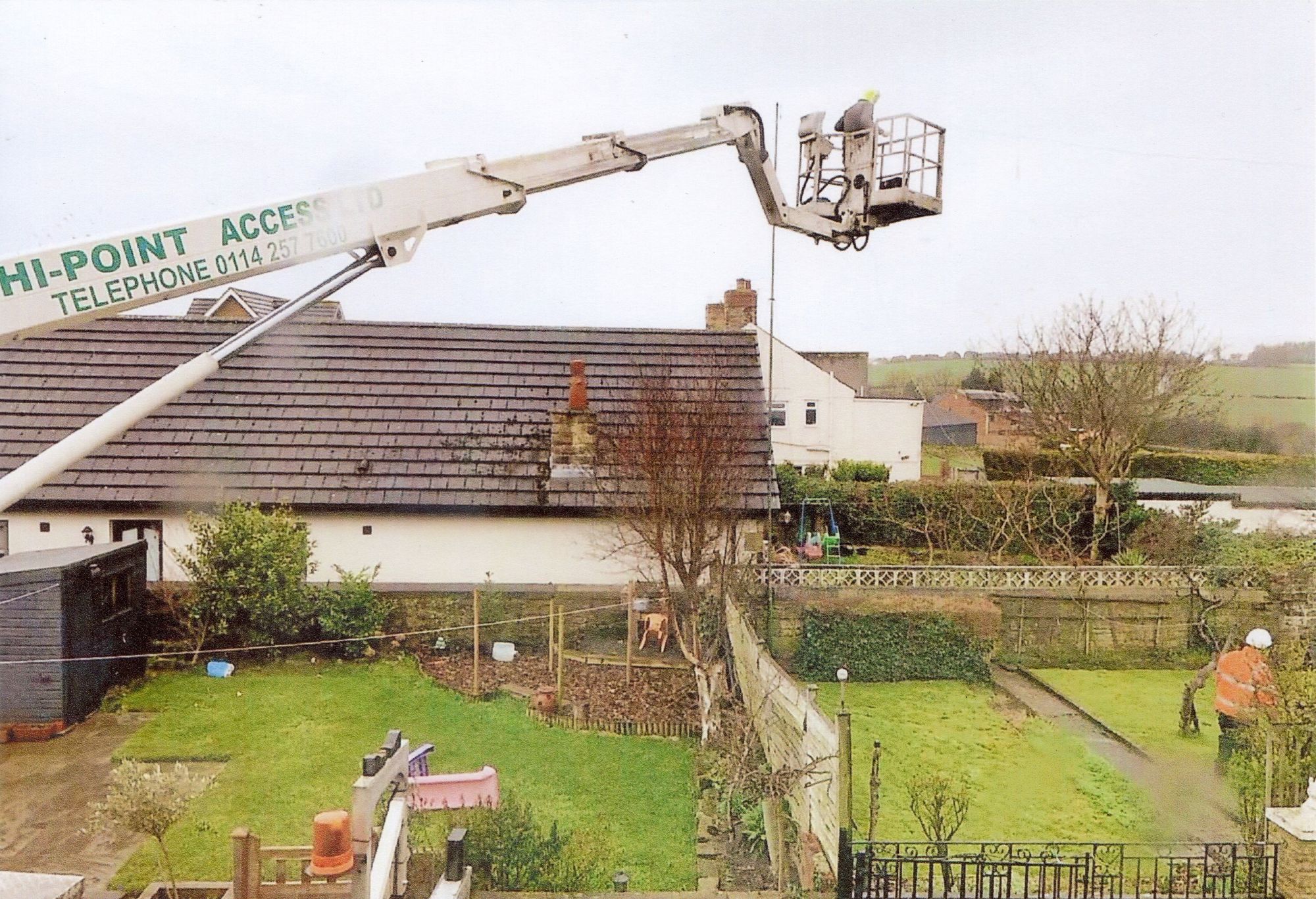 A cherry picker gets Radio Britannia back on the air after storm damage