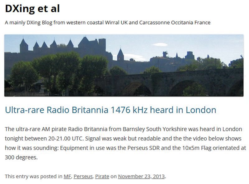 DXing et al receives Radio Britannia 1476kHz in London, November 2013