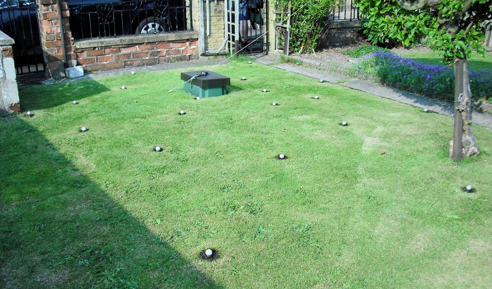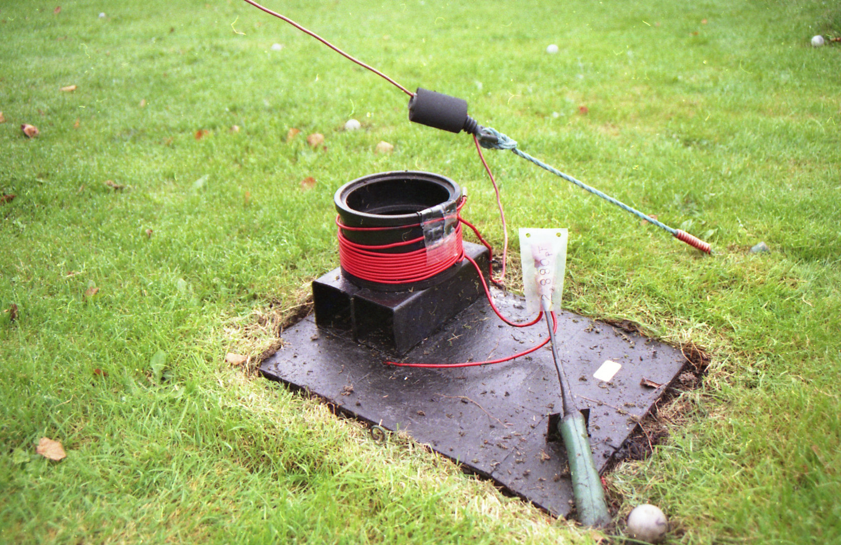The aerial feed point, buried radials and some of the ground rods