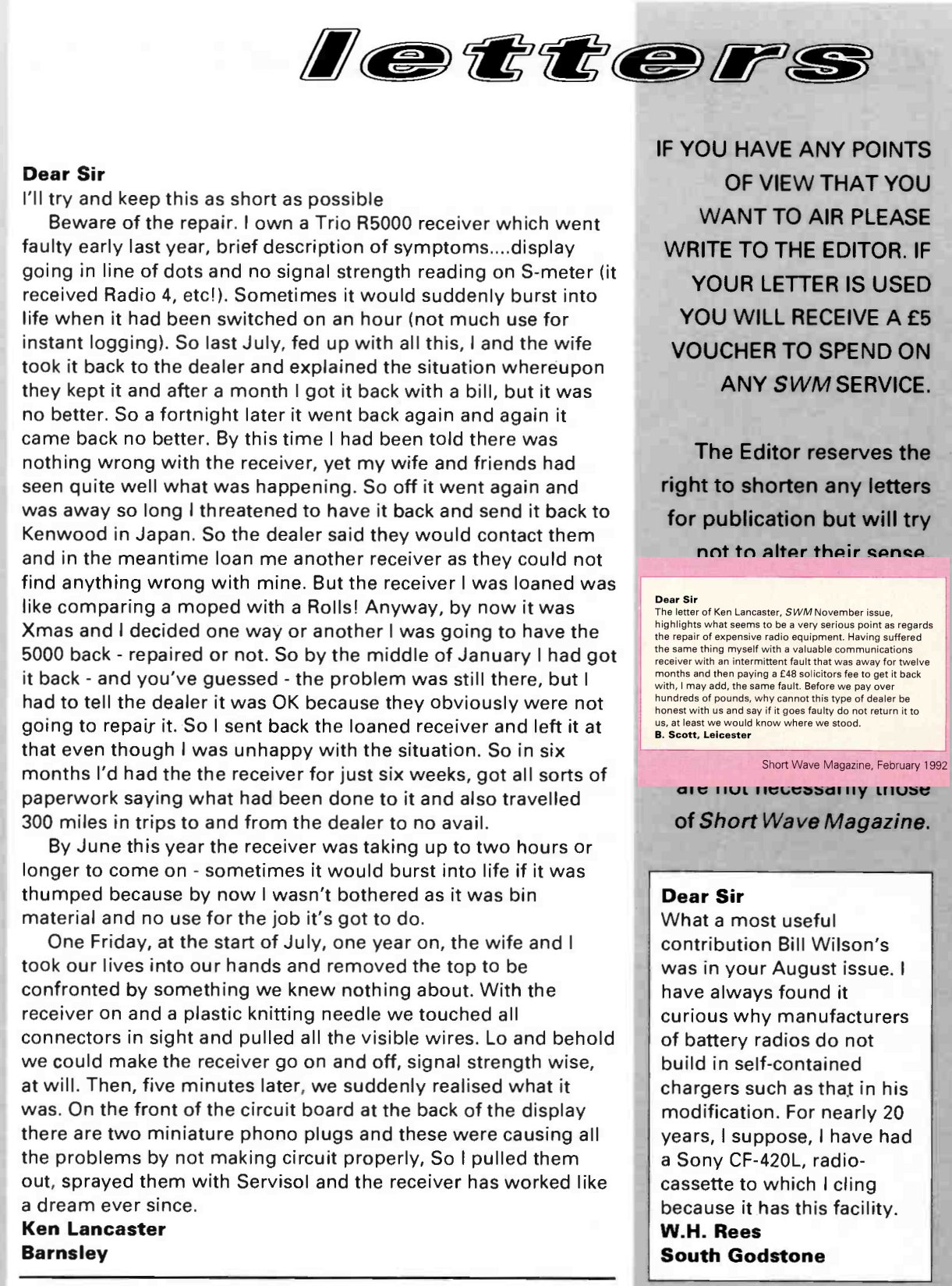 Kenny and his wife fix a radio a dealer couldn't, SWM November 1991