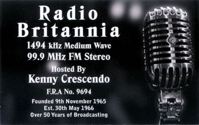 Radio pirate ships were on the air and in the news at the time but seeing a photograph of the Queen's Royal Yacht Britannia inspired Kenny with the name for his own station, making its first proper broadcast on 30th May 1966.